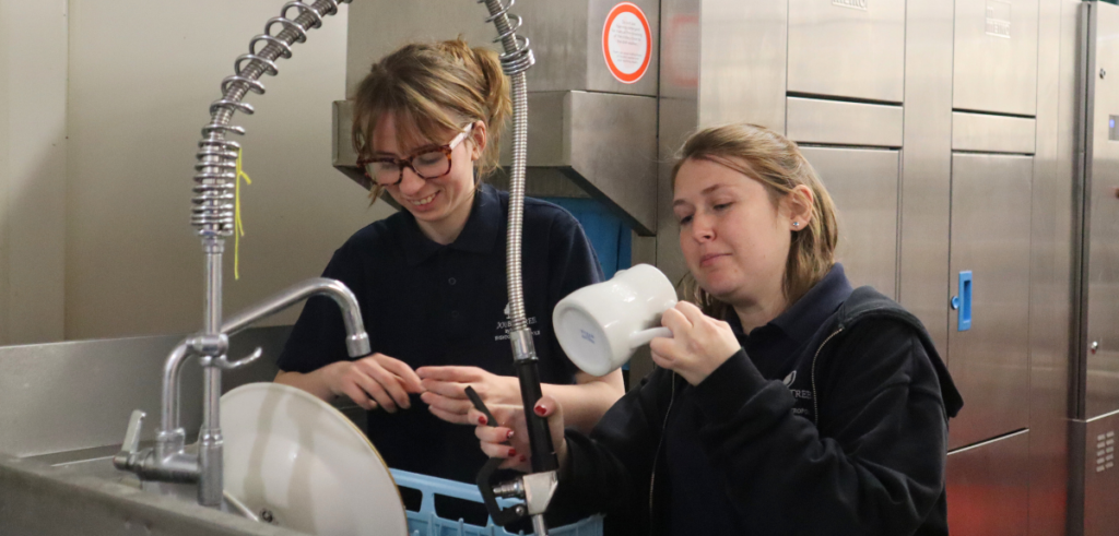 June is a second-year candidate completing a supported internship as a Kitchen Porter (KP) at DoubleTree by Hilton Brighton Metropole. Before starting her placement, she completed qualifications in the Team Domenica classroom, work experience in the community, and hands-on training in our cafés. Here she developed her practical kitchen skills and a fondness for being a KP.